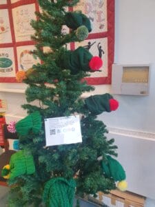 We were pleased to accept a tree for the church and one for The Cornerstone from The Barkham Hookers Crochet group. This Christmas they are donating full sized HatMas Trees to any community spaces that think they would be useful. It is an artificial Christmas Tree covered in bobble hats to look like baubles which are completely free to take for anyone who would like one!