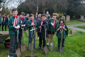 4th Wokingham Cubs planted a tree in the churchyard at All Saints Church recently. This was their response to the tree-planting initiative in commemoration of the reign of Queen Elizabeth II. A copper beech tree was chosen to replace the old copper beech tree that had to be removed in 2021 because of disease.