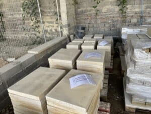 Something else is beginning to take shape a couple of hundred miles away – pallet loads of stone of stone for the floor – certainly the single most expensive item and probably the most significant of all the work. They are all labelled to be delivered to us – just as soon as the screed has been laid and has dried out.