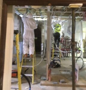 Apart from stone laying the turn of the year sees work on the partitions in the mezzanine and on its ceiling, which will be installed below the insulation and ventilation for the toilets partitions in the mezzanine. There is an awful lot packed into this space and a real contrast with the wide open floor of the nave.