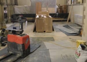 If you came, and were curious about the kitchen cabinets in the Lady Chapel – these are their way to the utility area where they will sit under a very long work top provide storage and work space for the Flower Guild.