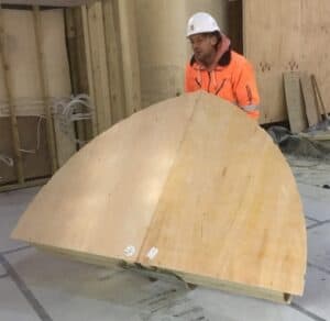 It’s the time for joinery – but the magnificent piece below is not for keeps. It is the shape around which the arch for the new door will be built.