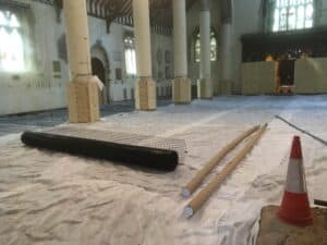 The road cone on the right in the picture of the inside of the church is not there just for fun. It marks the edge of the pulpit step. After the slight damage that took place previously we particularly don’t want any more, as we are now not going to move the pulpit . When we got the firm (rather than provisional) price for moving the pulpit, it was much higher than expected and we looked again at whether the move was really needed. It was when we were going to have a new pipe organ. Now we are instead going to refurbish our existing organ the space needed is much less and we can accommodate both the organ console and the pulpit on the north side of the church.